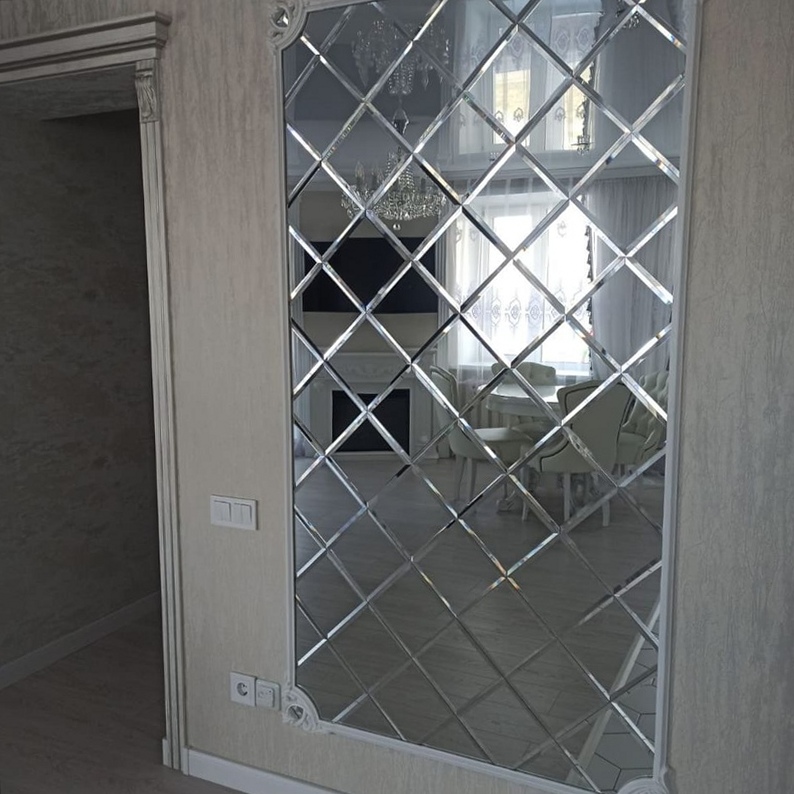 Использована серебряная зеркальная плитка «вытянутый ромб».